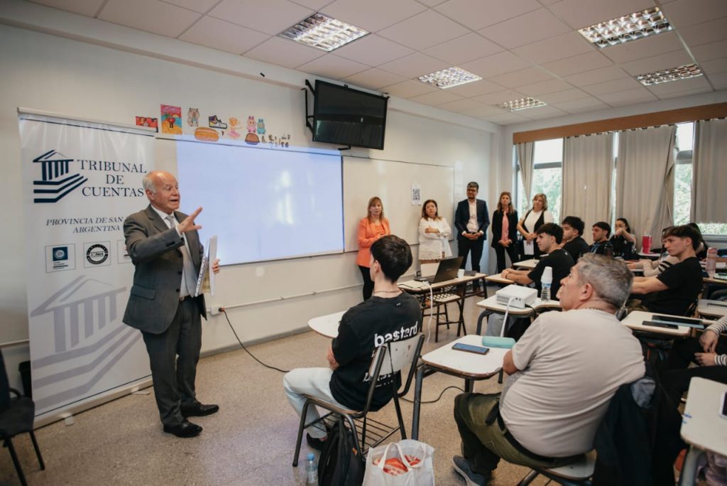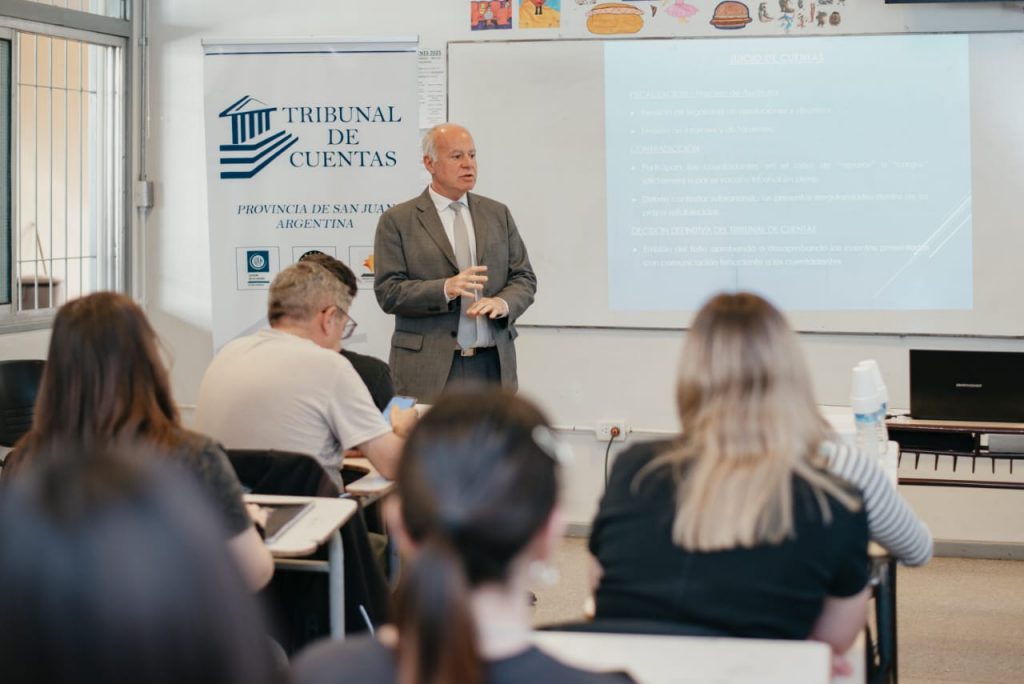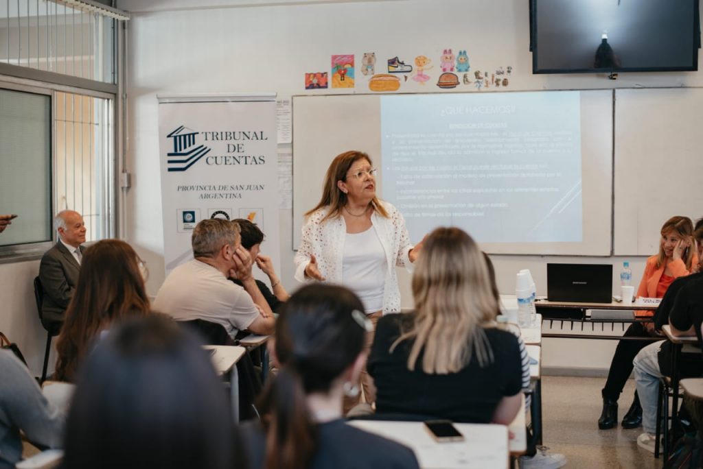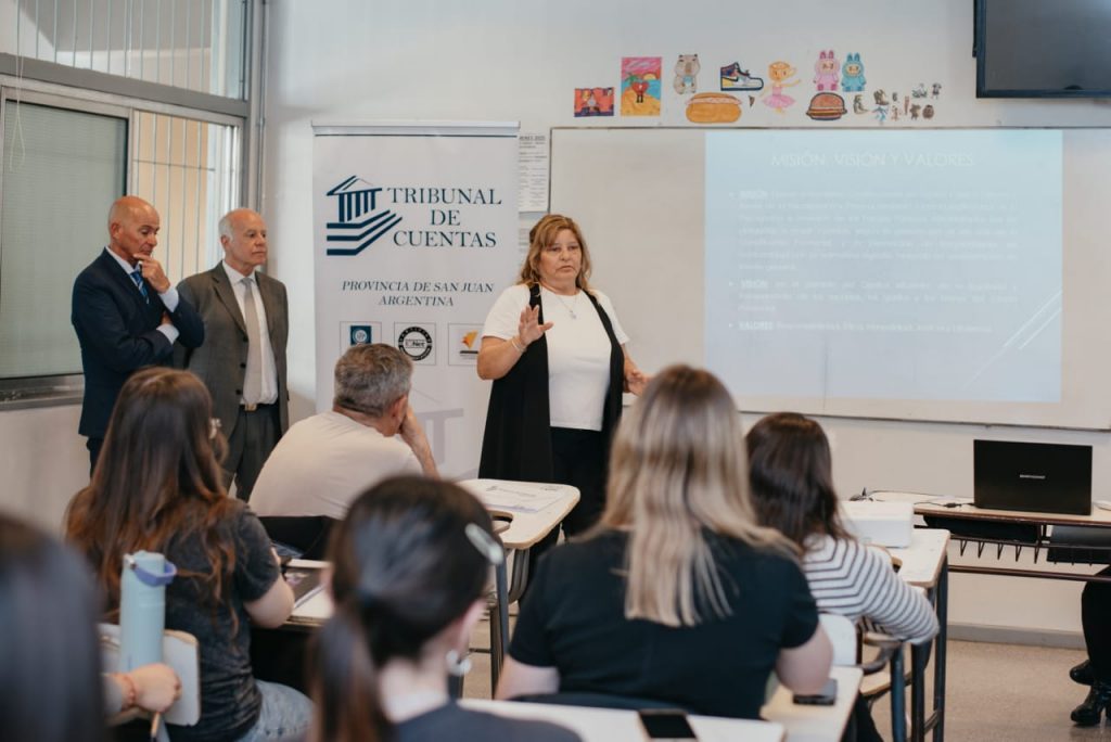 El pasado lunes 29 de septiembre, miembros del Tribunal de Cuentas de la Provincia de San Juan visitaron la Facultad de Ciencias Económicas y Empresariales para brindar una charla destinada a los estudiantes de la carrera de Contador Público, en el marco de las materias Administración Financiera del Estado y Contabilidad Pública y Auditoría.