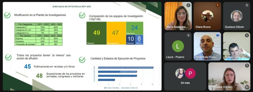 El encuentro, organizado por la Secretaría de Investigación y Vinculación Tecnológica, fue desarrollado en modalidad virtual y participaron más de noventa docentes, investigadores, estudiantes y graduados de las sedes central en San Juan, San Luis y Mendoza de esta UCCuyo.
