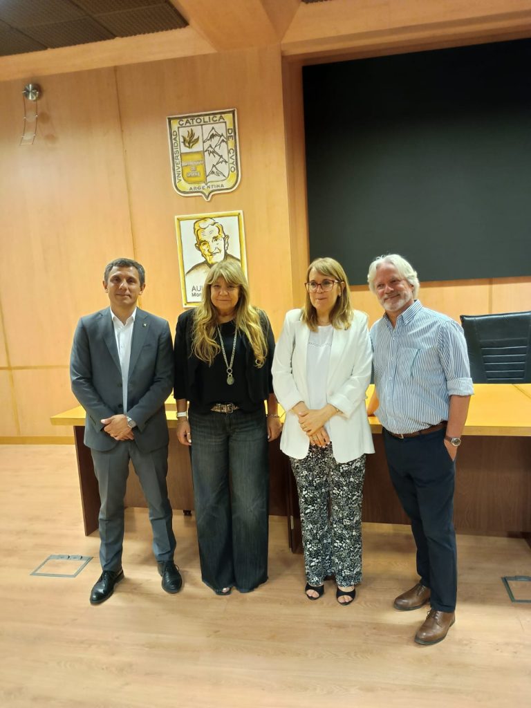 El jueves 20 de noviembre se realizó en el Aula Magna de la Universidad Católica de Cuyo la presentación oficial del Programa Institucional “Una Salud”, un acontecimiento que reunió a autoridades, docentes, estudiantes y profesionales de la salud. La actividad se desarrolló en articulación con AFACIMERA, reafirmando el compromiso conjunto con la formación, la investigación y la promoción de la salud desde un enfoque integral.