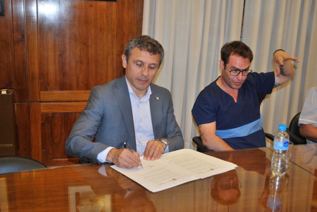 Este objetivo del Acta Complementaria al Convenio Marco firmado con el Centro, consolida una alianza estratégica y prevé el trabajo de los profesionales de las carreras de Licenciaturas en Terapia Ocupacional, Kinesiología y Fisiatría, Nutrición y Fonoaudiologia. El convenio marco fue suscripto por la rectora, Lic. María Laura Simonassi y el director médico de REHABILITAR San Juan, Dr. Martín Ricardo Sassul, mientras que las actas complementarias fueron firmadas por el decano de la Facultad de Ciencias Médicas, Esp. Sergio Gabriel Albarracín.