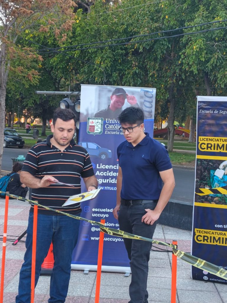 La Escuela de Seguridad participó en el 3° Festival de Ciencia y Tecnología denominado “Crear Con-Ciencia” evento concretado el sábado 11 de abril de 2026 en el Centro Cultural Amadeo Conte Grand de San Juan. En la oportunidad alumnos de Lic. en Criminalística y Accidentología Vial, desarrollaron una muestra didáctica sobre el “Proyecto calles Seguras”. Asimismo, el Instituto de Investigación (ISCRI) anticipó el lanzamiento de una campaña de prevención de ciberdelito y estafas virtuales en marco del diseño de políticas públicas de seguridad.