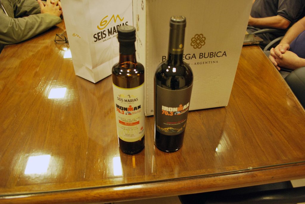 El Gobierno de San Juan a través de sus Ministerios de Turismo, Cultura y Deporte y de Producción, Trabajo e Innovación unió los esfuerzos de empresas privadas, Fábrica de Aceite de Oliva Seis Marías y Bodega Búbica integrantes de la oferta exportable local, para crear una edición limitada de vino y aceite de oliva para la competencia internacional Ironman 70.3, que se realizó los primeros días de abril en nuestra provincia. Los beneficios de este acuerdo, netamente privado entre estas empresas, se destinaron a becas para estudiantes universitarios de departamentos alejados, a través de la Universidad Católica de Cuyo.