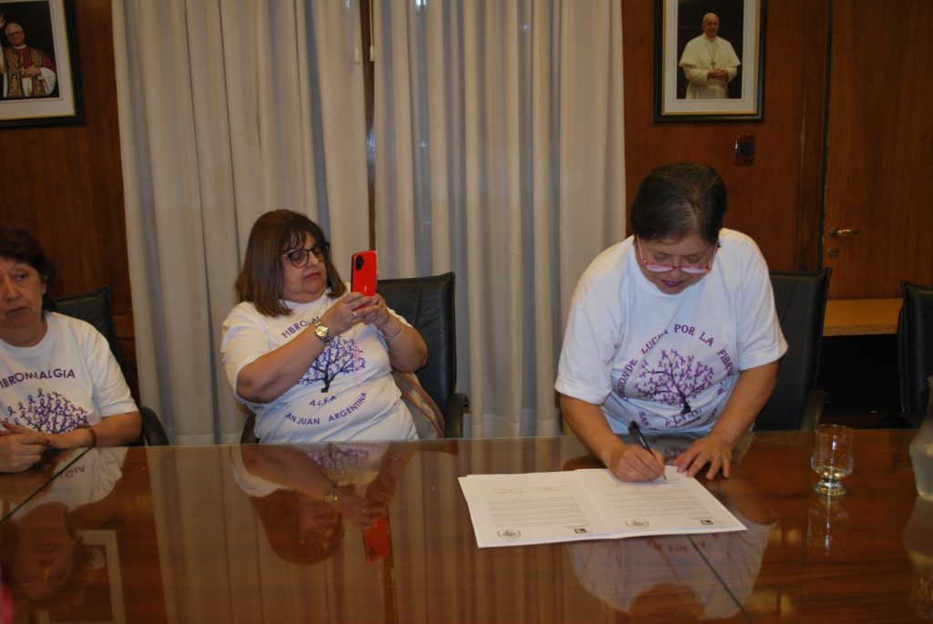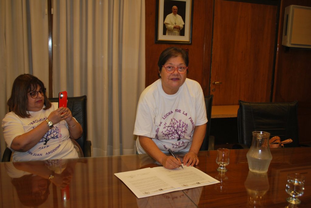 El encuentro fue formalizado el 15 de abril y firmado por la rectora de la UCCuyo, Lic. María Laura Simonassi y la presidenta de la Asociación de Lucha por la Fibromialgia, Sra. Claudia Amelia Arias.